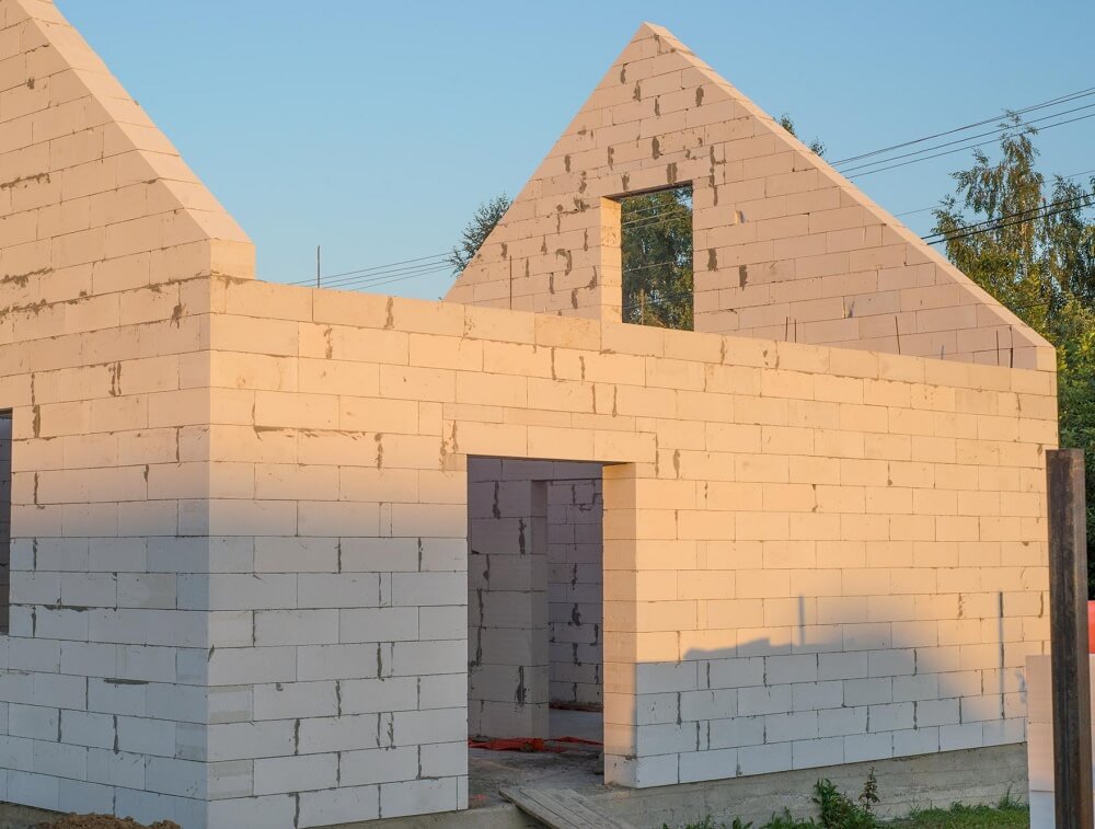 Дом из газобетонных блоков считается быстровозводимым строением, т.к. сами блоки крупнее по размерам, чем кирпич. Они имеют ровную поверхность, что при качественной кладке позволяет использовать тонкий слой штукатурки при последующей отделке.